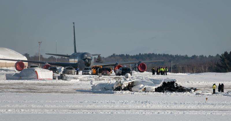 Investigators from the Federal Aviation Administration and National Transportation Safety Board investigate a plane crash at Bangor International Airport Wednesday, Jan. 28, 2026 in Bangor, Maine. (Linda Coan O'Kresik/The Bangor Daily News via AP)
