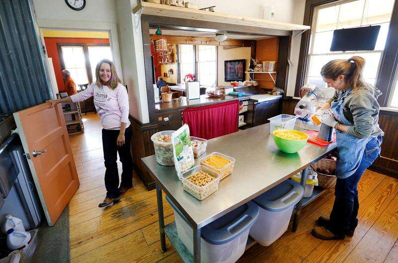 Cynthia Klumker, co-owner of Zuma Natural Foods, talks with cook Dylan Kleinberg on Monday. The store is located at 299 north Main talks with customers on Monday. JERRY McBRIDE/Durango Herald