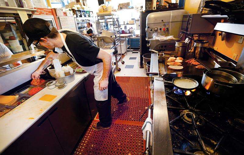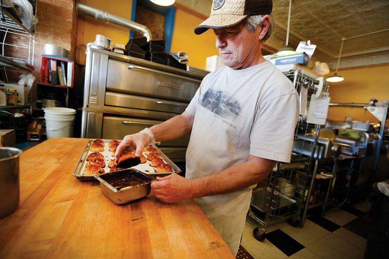 Ben Fisher cook at the Absolute Bakery is one of several people responsible for producing delicious meals at the bakery. JERRY McBRIDE/Durango Herald