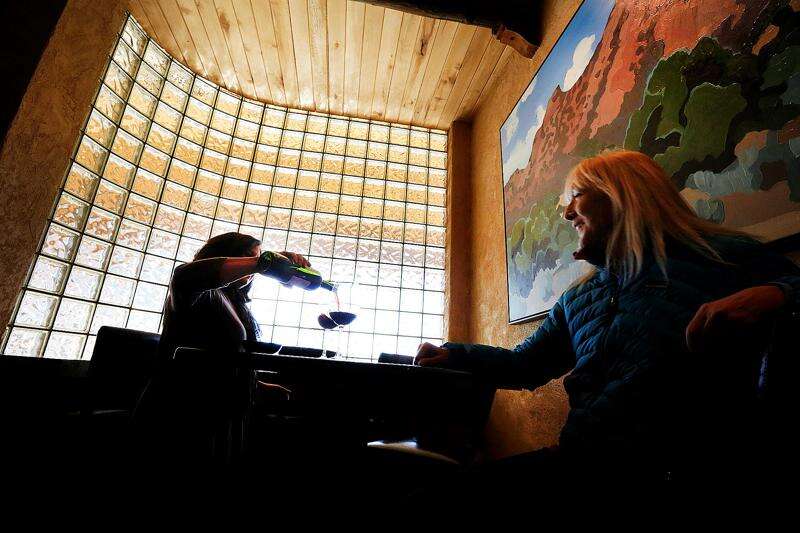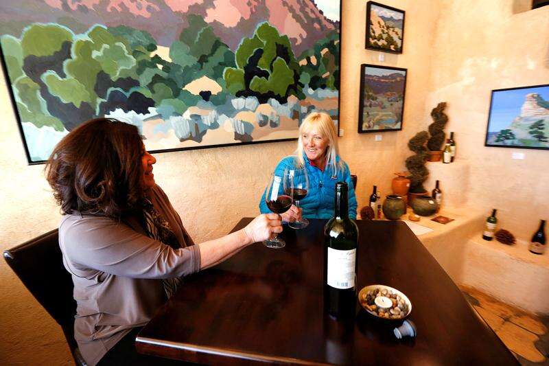 Rena Wilson, left, and June McCartney, enjoy a glass of wine at Olio's Wine Bar and Restaurant on Monday. Olio's is located at 114 Grand Avenue in Mancos. JERRY McBRIDE/Durango Herald