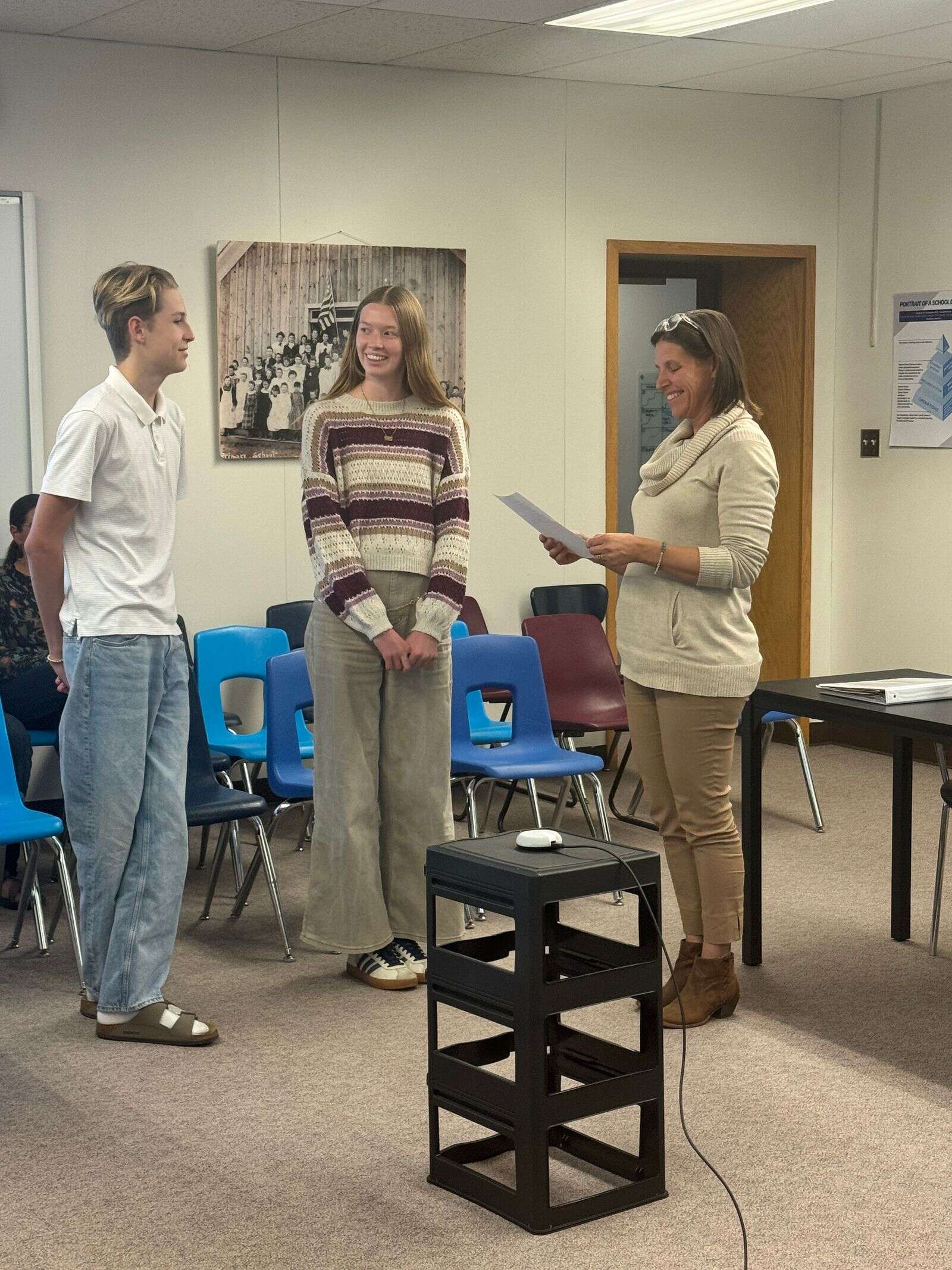 The two students, chosen through an application and interview process, were introduced as Mancos High School senior Greta Thompson and sophomore Rhett Brown.