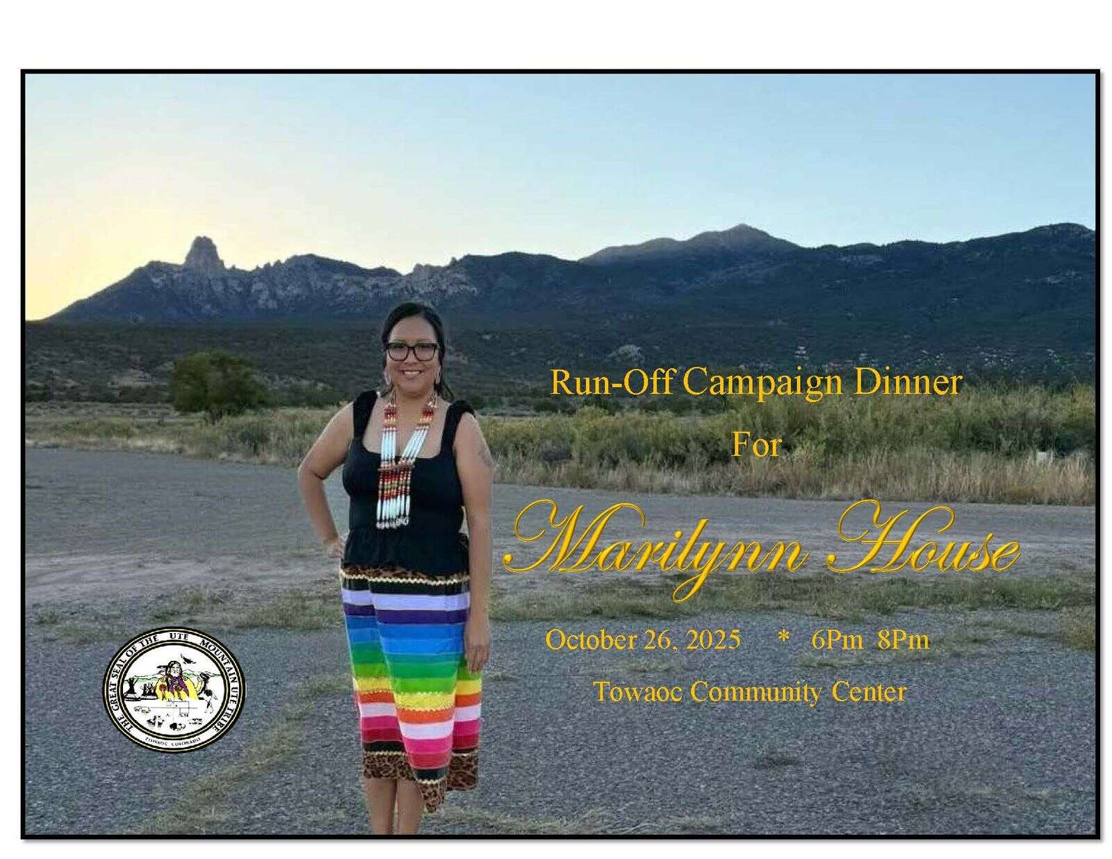 Campaign poster for Marilynn House, who was elected as the latest addition to the Ute Mountain Ute’s Tribal Council in Towaoc, according to the unofficial count from an Oct. 29 run-off with Evelyn Lopez. (Courtesy photo/Weenuche Smoke Signals)