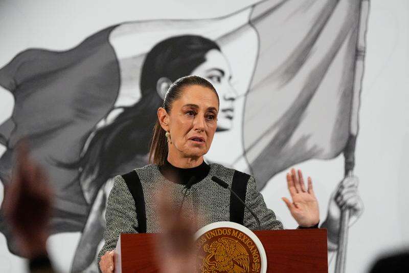 FILE - Mexican President Claudia Sheinbaum speaks during her daily morning press conference at the National Palace in Mexico City, Nov. 28, 2025. (AP Photo/Marco Ugarte, File)