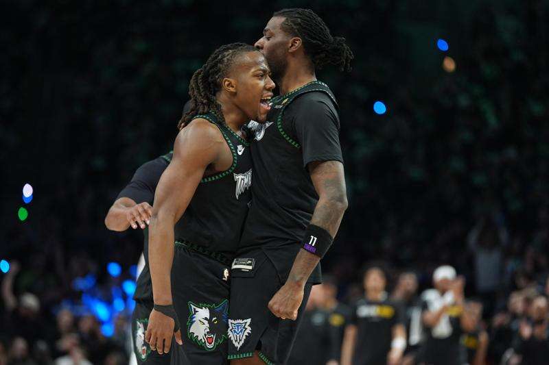 Even with their starting backcourt of Donte DiVincenzo (Achilles) and Anthony Edwards (knee) getting hurt Saturday night, the Wolves raced past the Nuggets 112-96 behind Ayo Dosunmu's career-best 43 points, the most by a reserve in a playoff game in half a century.
