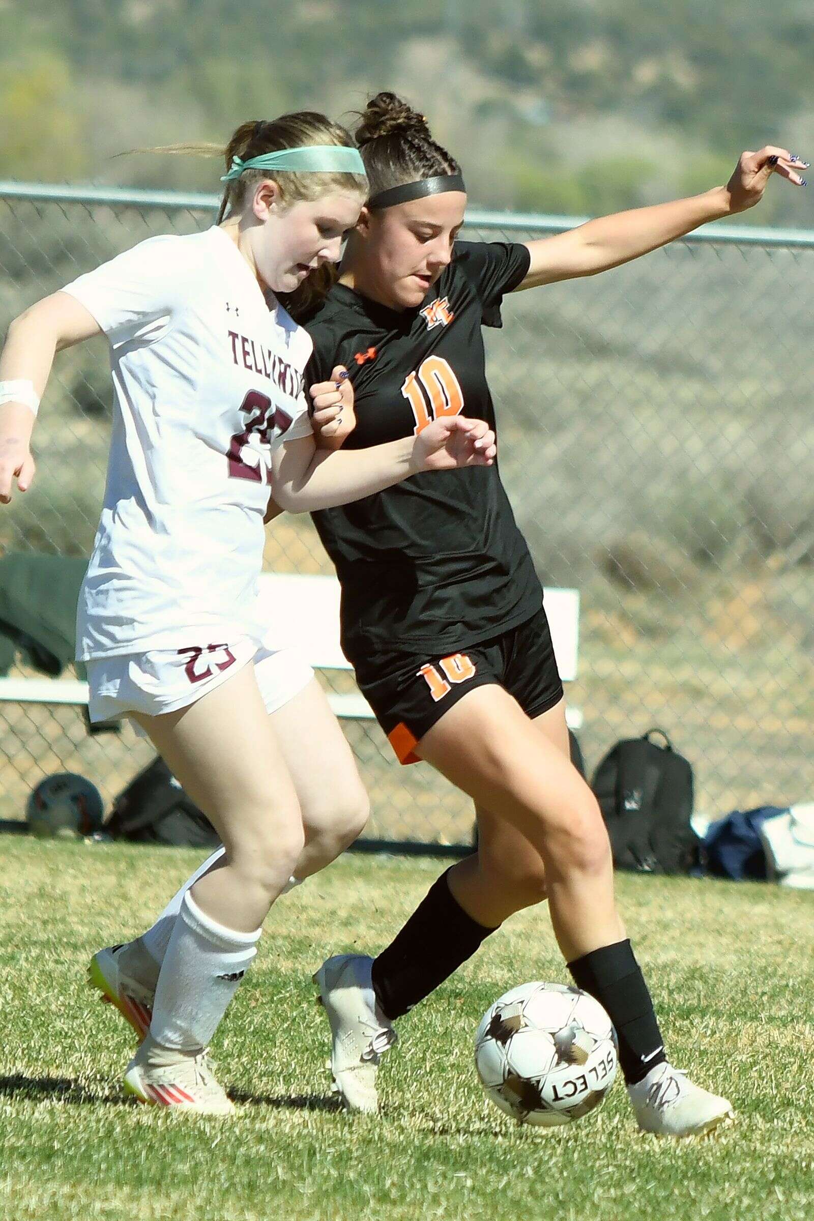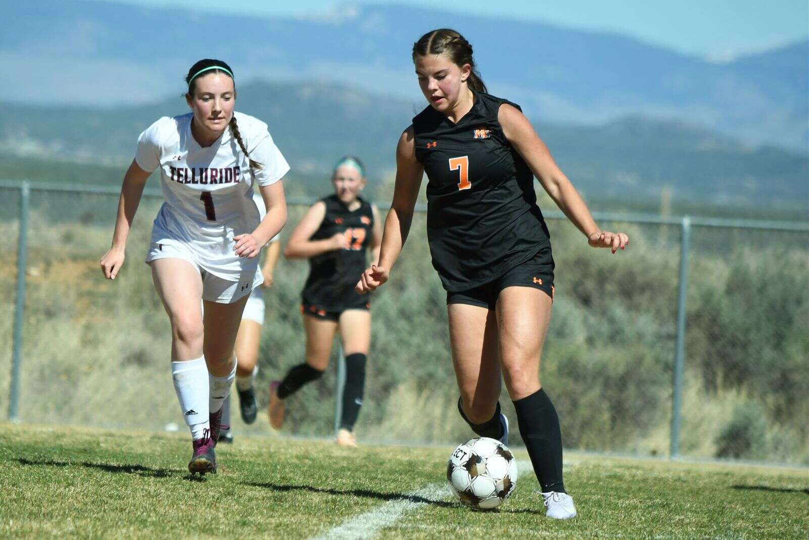 That urgency grew early in the second half, when Telluride sophomore Sienna Aplin and junior Eadie O’Callaghan tested M‑CHS sophomore goalkeeper Raegan Veach with firm, low shots in the opening seven minutes after intermission.