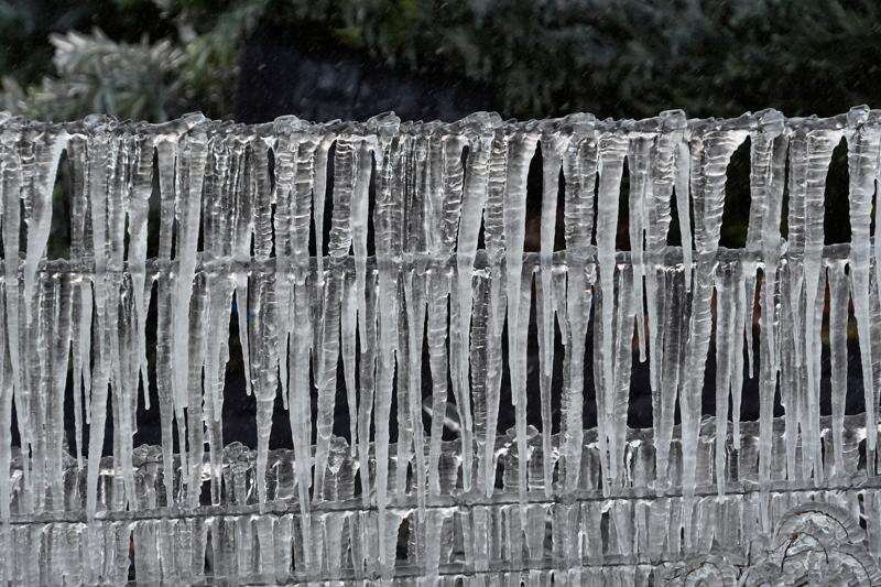 Icicles cling to a barbed wire fence surrounding an ornamental plant nursery Sunday, Feb. 1, 2026, in Plant City, Fla. (AP Photo/Chris O'Meara)