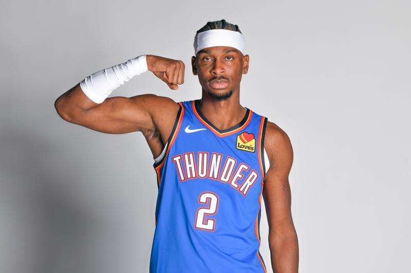 Oklahoma City Thunder guard Shai Gilgeous-Alexander poses for a photo during the NBA basketball team's media day, Monday, Sept. 29, 2025, in Oklahoma City. (AP Photo/Kyle Phillips)