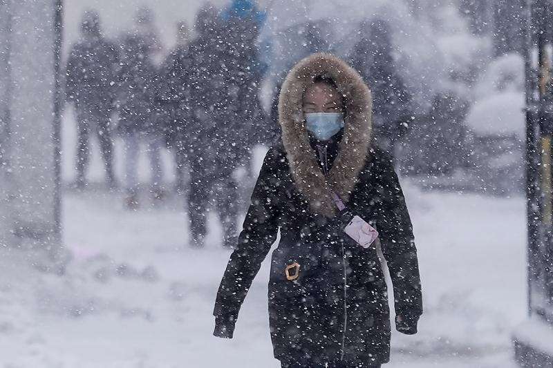 A man walks along the Hudson River Greenway in lower Manhattan during a snow storm, Monday, Feb. 23, 2026, in New York. (AP Photo/Seth Wenig)