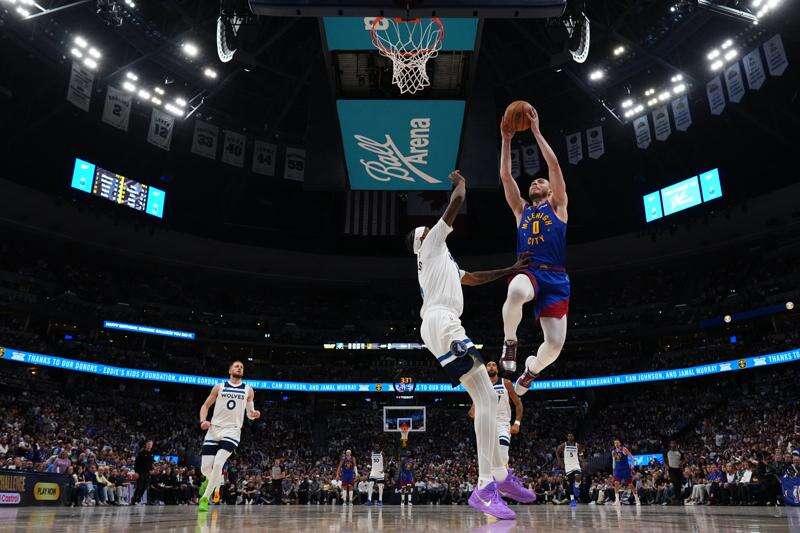 DENVER (AP) — Denver's All-Star duo of Nikola Jokic and Jamal Murray shot 2 for 12 in the fourth quarter of their Game 2 loss to the Minnesota Timberwolves, yet the shot that could have stung them most was the one delivered by Jaden McDaniels afterward.