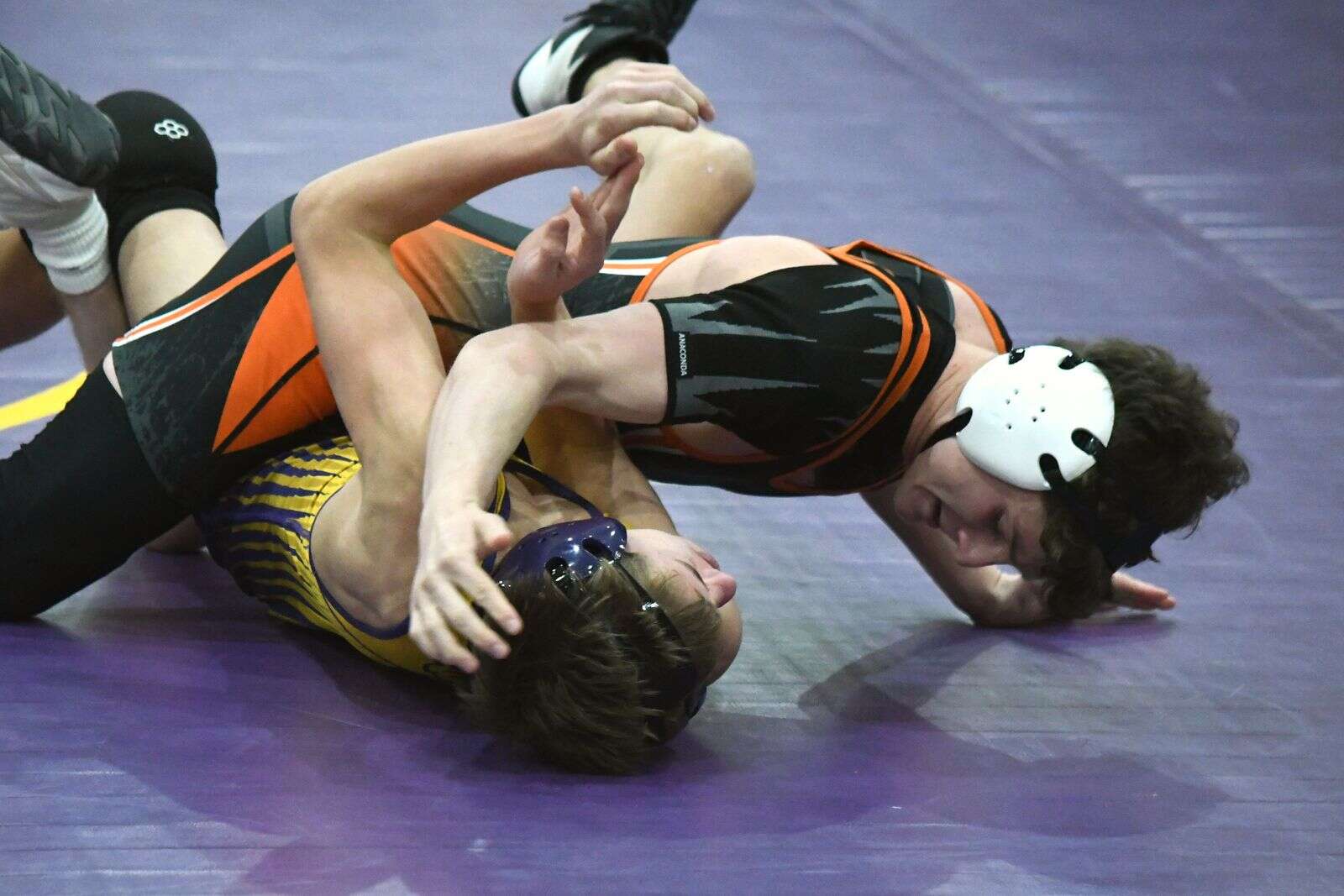 For M‑CHS, Rusty Snyder bested the field in the 144‑pound division, closing out the top spot with a thrilling 13‑12 decision over Monticello’s John Leber in the championship match, capping a five‑match winning day for the Panthers senior and surpassing the 30‑win mark in his final season with the orange‑and‑black.