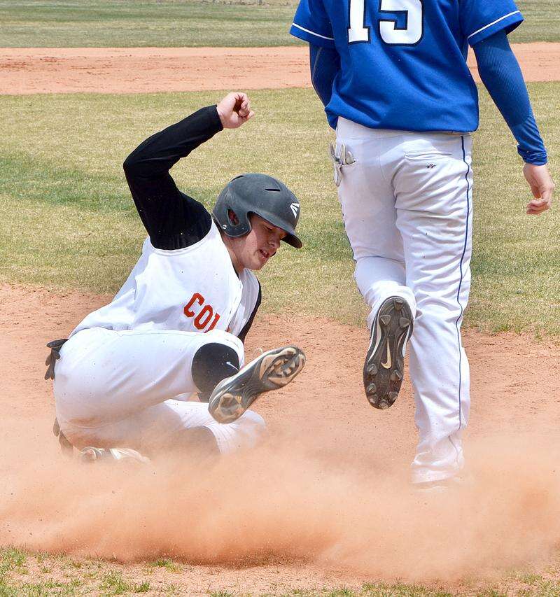 Tallon Ralstin slides safely into third, as he stole the base on the way to an 8-3 victory over Cedaredge on Saturday at McAndrew Field.