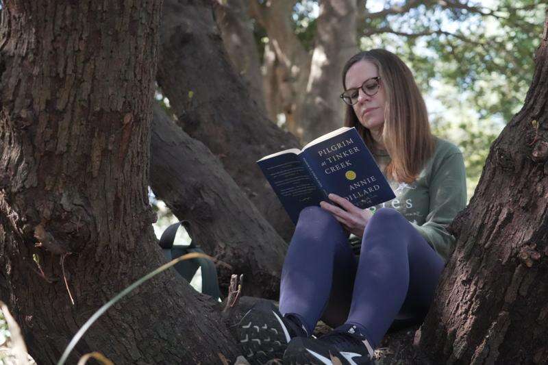 The Sunday morning session was led by certified forest therapy guide Shawn Ramsey. Jingling a tiny brass bell, she called her dozen or so charges to gather for meditation, breathing exercises and to commune with nature.
