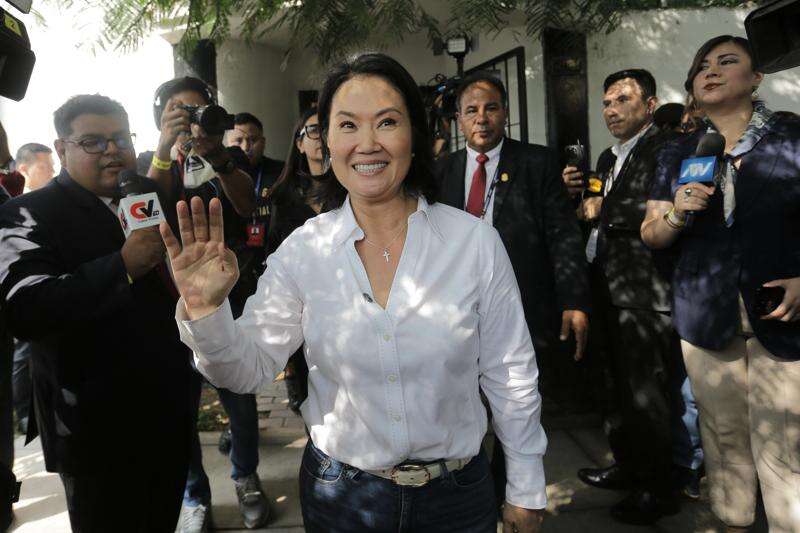 Keiko Fujimori, presidential candidate of the Popular Force party, after a breakfast with supporters on general elections day in Lima, Peru, Sunday, April 12, 2026. (AP Photo/Gerardo Marin)