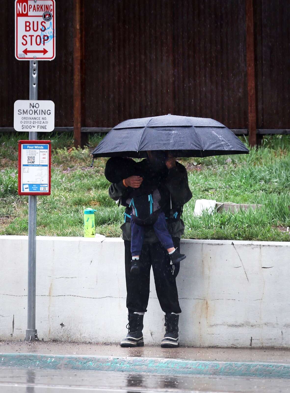 Umbrellas came out in Durango on Wednesday as a spring storm moves through the area with snow falling in the higher elevations. (Jerry McBride/Durango Herald)