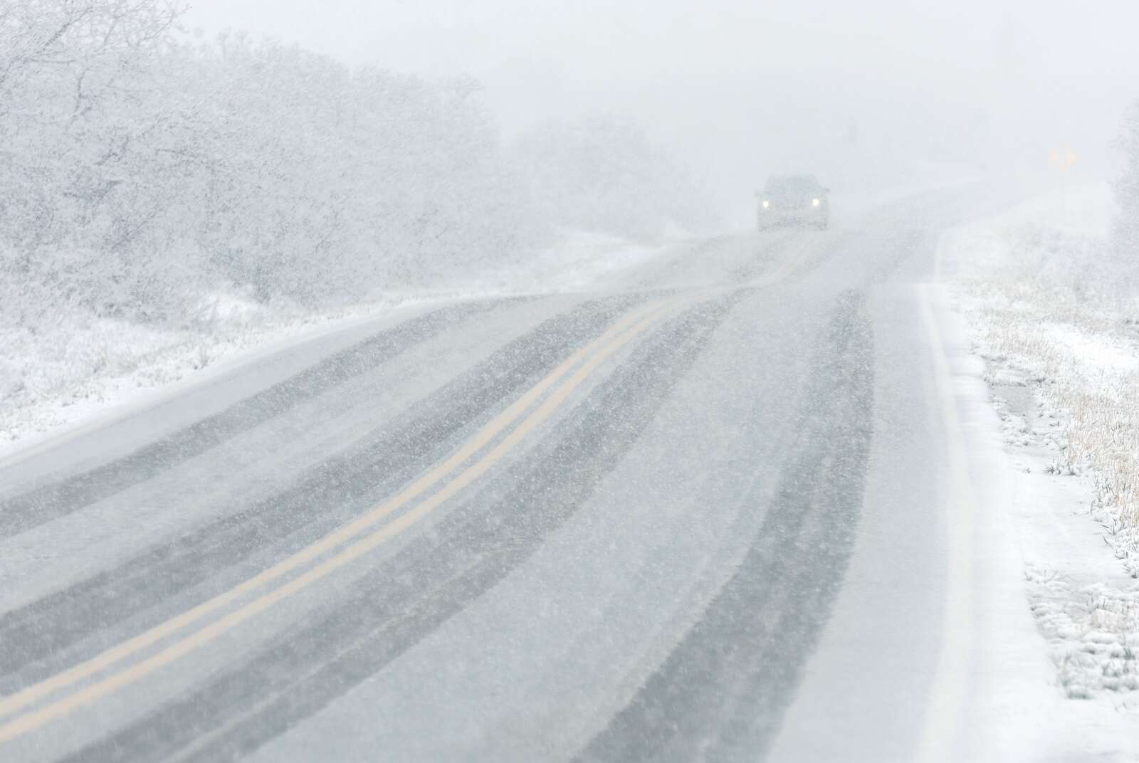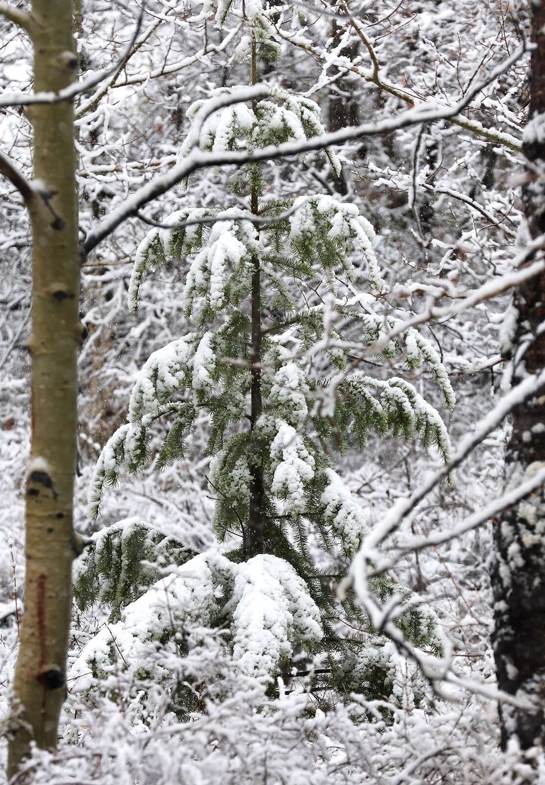 Heavy snowfall begins to cover County Road 124 near the La Plata Mountains on Wednesday as a spring storm moves through the area. (Jerry McBride/Durango Herald)