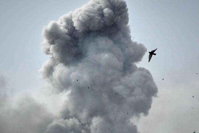 Strikes on Sunday night hit a state TV building, causing heavy damage to the Gandhi Hospital across the street, forcing its evacuation. The façade of the hospital was shattered, and rubble from the walls spilled over hospital beds.