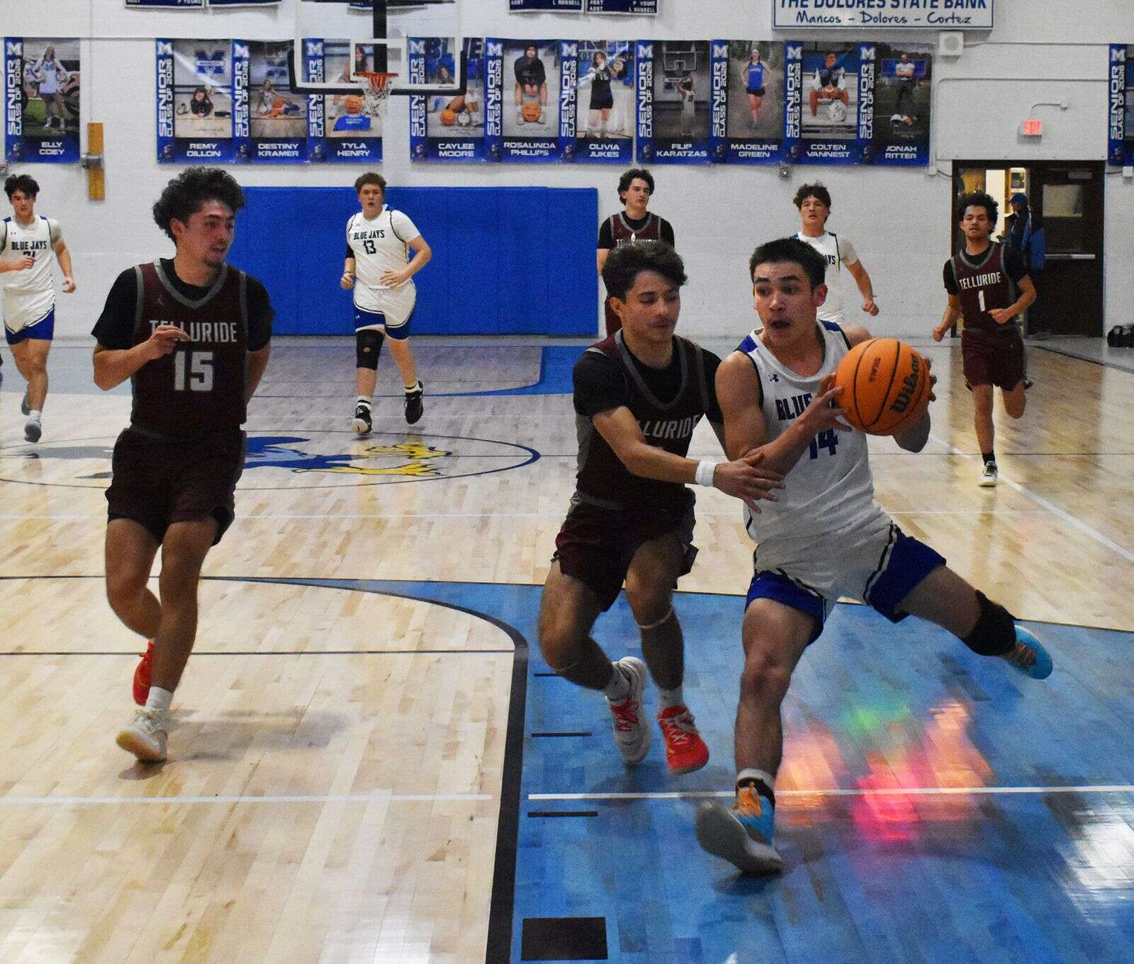 Mancos junior AJ Simmons and the Bluejays faced off against Telluride on Thursday night at Bluejay Fieldhouse. Erika Alvero/Special to The Journal
