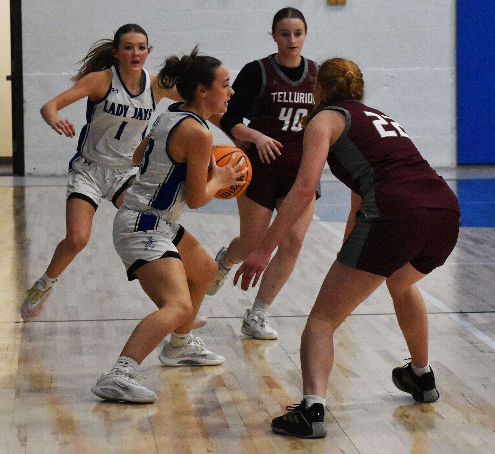 MANCOS – The Mancos girls (5-9, 3-4 3A/2A/1A SJBL) picked up a crucial home win over Telluride in a defensive struggle, 22-18, on Thursday night. Senior Caylee Moore led the Jays with 10 points while classmate Destiny Kramer added seven and freshman Tymbri Priestley tallied four.