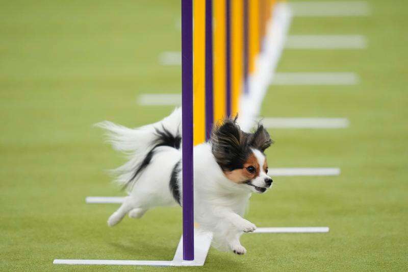 A papillon dog competes in the Masters Agility Championship Finals at the 150th Westminster Kennel Club Dog show, Saturday, Jan. 31, 2026, in New York. (AP Photo/Yuki Iwamura)