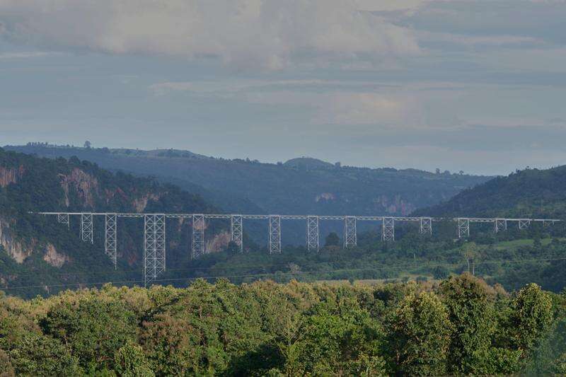 In this photo taken during a trip supervised by pro-military Myanmar media, the Goteik bridge is seen in Kawnghkio township, northern Shan State, Myanmar, Friday, Oct. 10, 2025. (AP Photo/Aung Shine Oo)