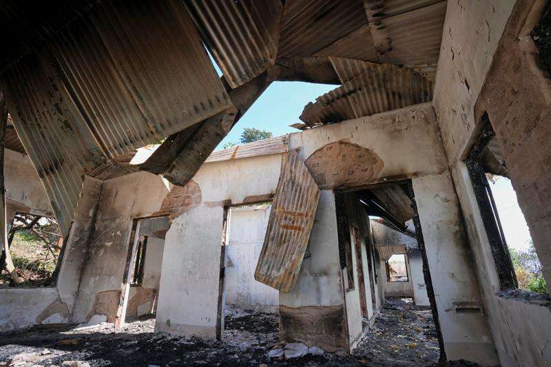 In this photo taken during a trip supervised by pro-military Myanmar media, a damaged court is seen in Kyaukme, northern Shan State, Myanmar, Friday, Oct. 10, 2025. (AP Photo/Aung Shine Oo)