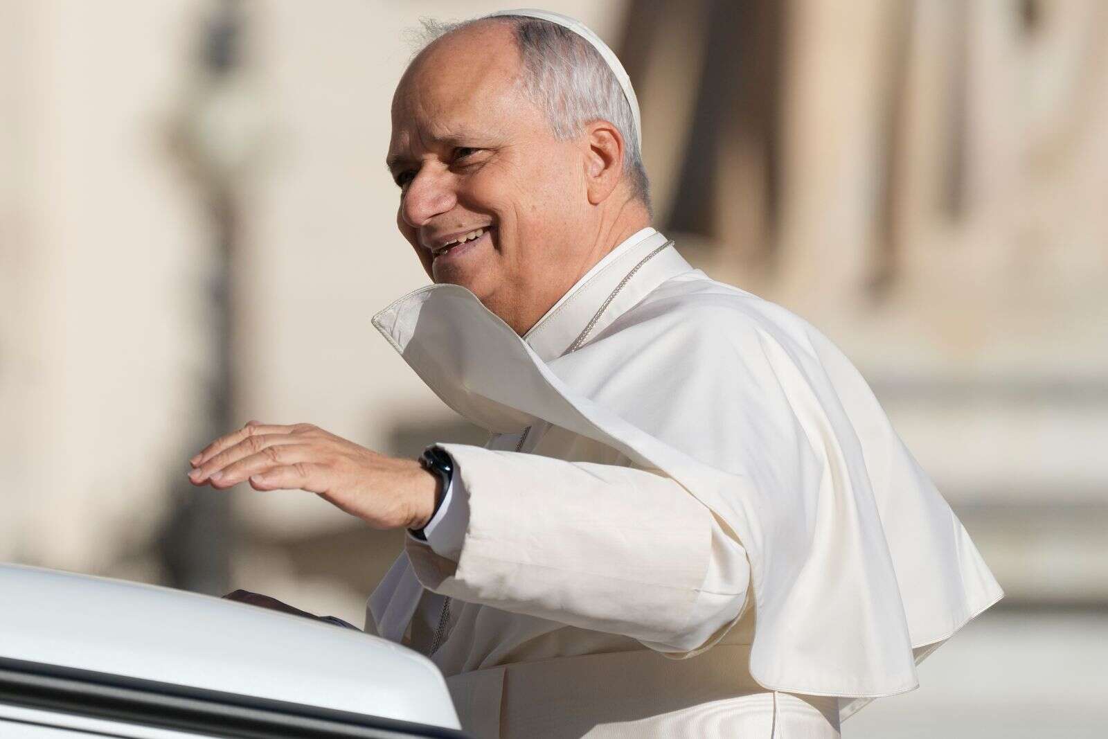 Pope Leo XIV arrives in St. Peter's Square on the occasion of the weekly general audience at the Vatican on Nov. 19. (Gregorio Borgia/The Associated Press)