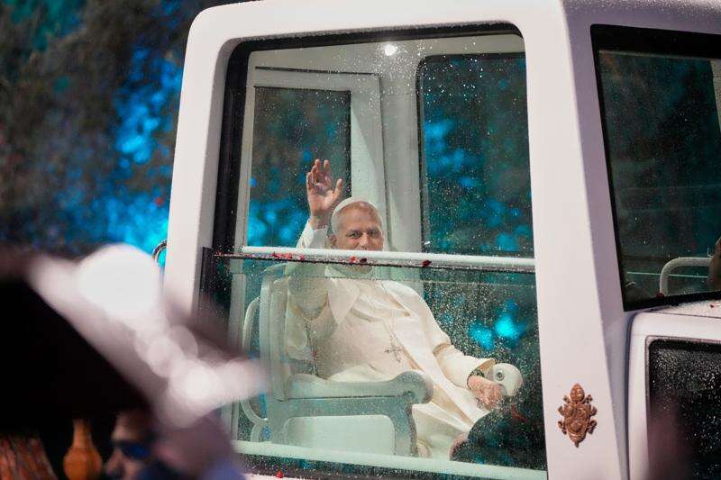 He moved through the streets of the Lebanese capital in a closed popemobile, a return to the past after Pope Francis eschewed closed popemobiles. Lebanese troops deployed on both sides of the road and a helicopter flew overhead.
