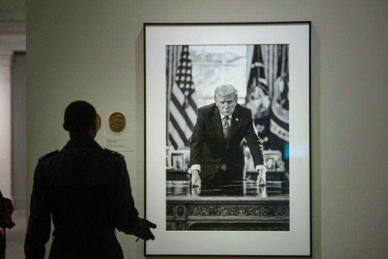 Asked about the display, White House spokesman Davis Ingle celebrated the new photograph, which shows Trump, brow furrowed, leaning over his Oval Office desk. Ingle said it ensures Trump's “unmatched aura ... will be felt throughout the halls of the National Portrait Gallery.”