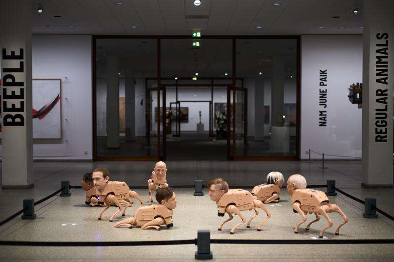 BERLIN (AP) — Robot dogs with hyper-realistic silicone heads modeled after world-renowned figures — including Elon Musk, Mark Zuckerberg, Jeff Bezos, Andy Warhol and Pablo Picasso — can be seen roaming around a Berlin gallery, occasionally “pooing” printed images of their surroundings which they've previously captured with integrated cameras.