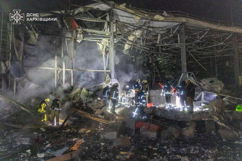 The attack in Ukraine’s Kharkiv region also wounded 10 people, local authorities said.