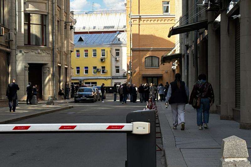 Several dozen people lined up outside a presidential administration building on a sunny spring weekend in central Moscow as police stood nearby and watched them closely.