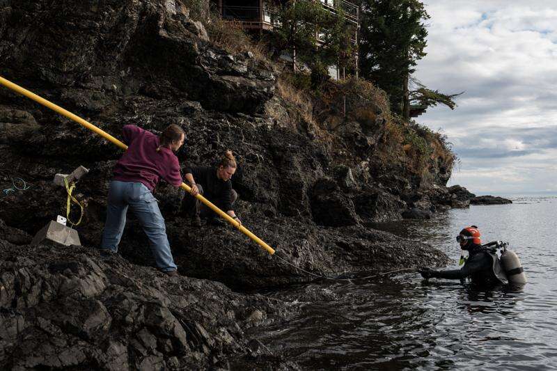 SAN JUAN ISLAND, Wash. (AP) — As dawn broke over San Juan Island, a team of scientists stood on the deck of a barge and unspooled over a mile of fiber-optic cable into the frigid waters of the Salish Sea. Working by headlamp, they fed the line from the rocky shore down to the seafloor — home to the region's orcas.