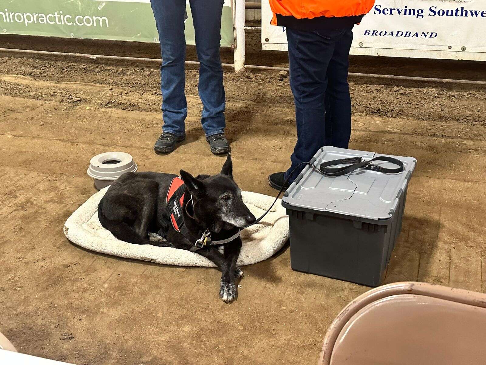 Quiddity, the K-9 Search and Rescue dog, took a break on her bed toward the end of the Futures Fair. She has served 100 missions over the course of 13 years. (Bailey Duran/Special to The Journal)