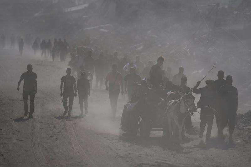 WADI GAZA, Gaza Strip (AP) — Tens of thousands of Palestinians displaced by the war in Gaza started walking north Friday toward homes they were forced to flee — or what remains of them — after the Israeli military announced a ceasefire between Israel and Hamas had gone into effect.