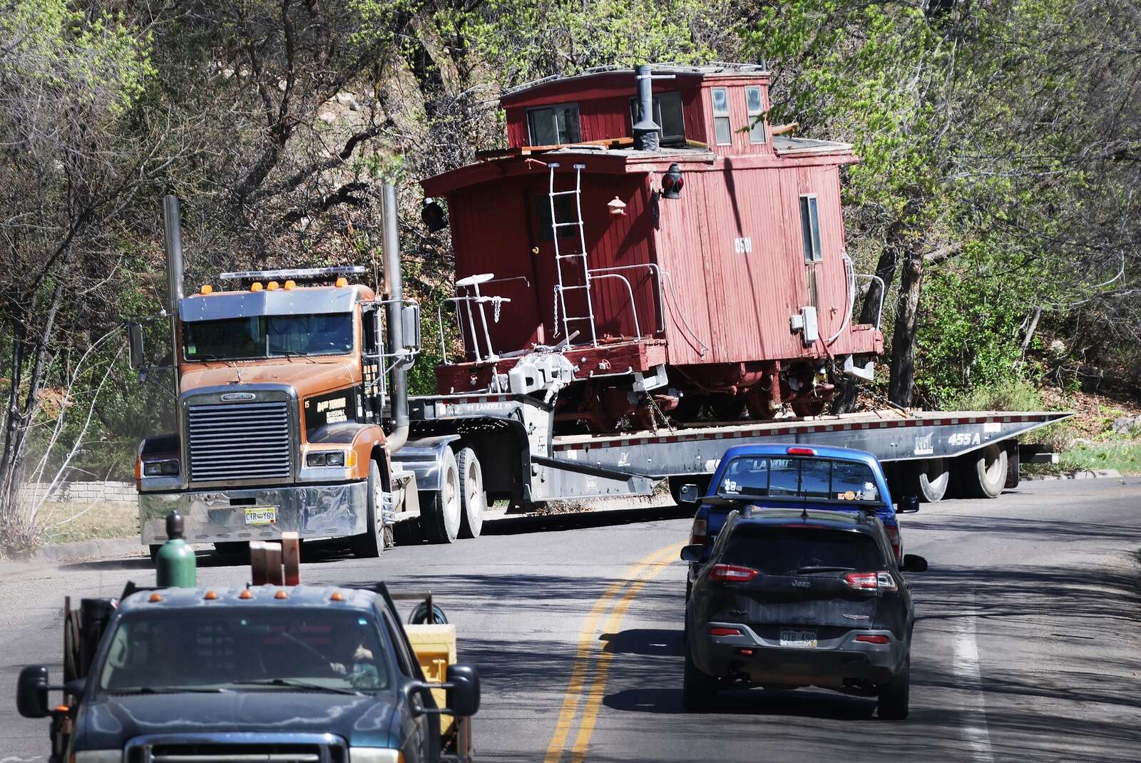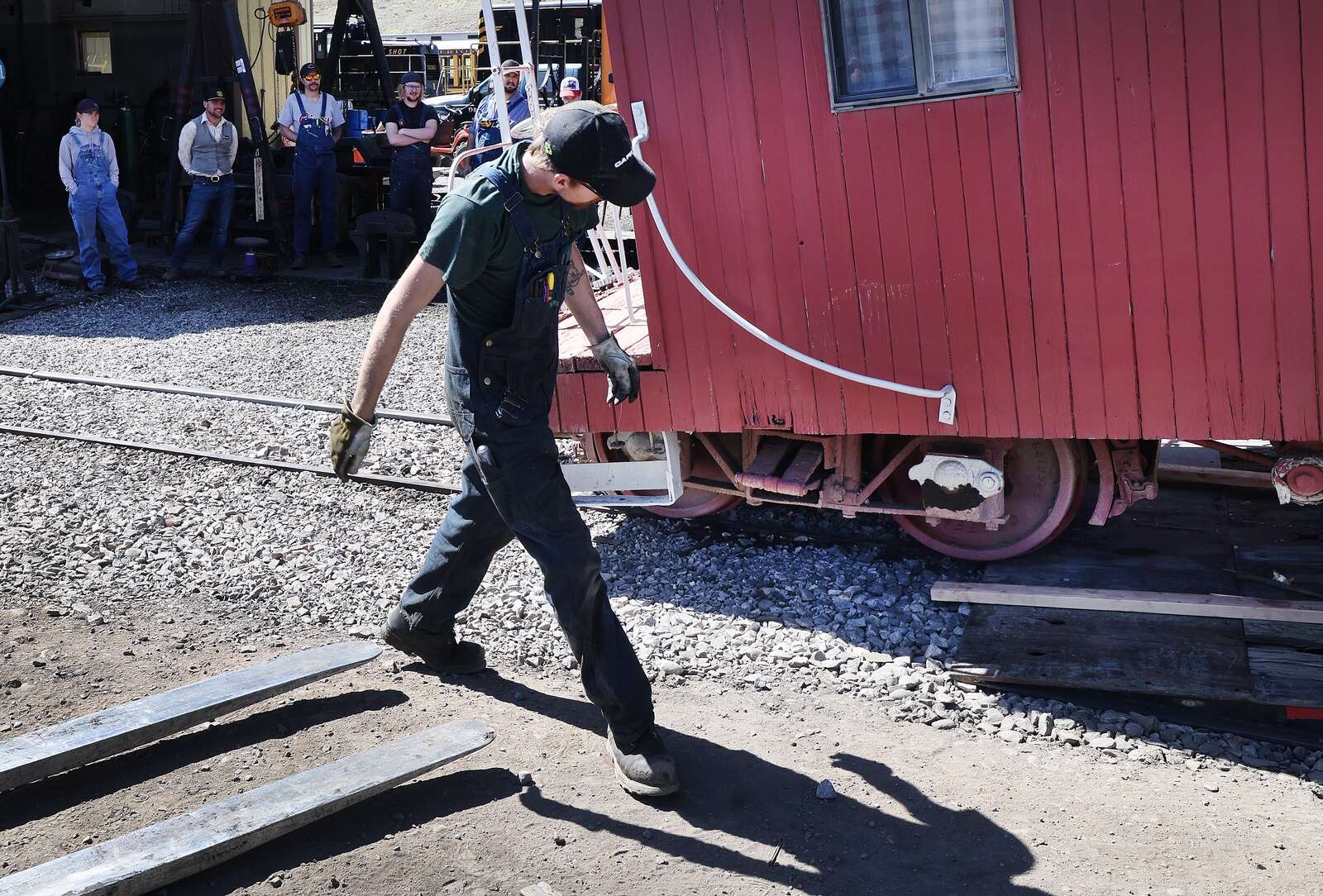 On March 27, the railroad arrived to pick up 0501. The caboose was lifted from its bed on the Clarks’ property, loaded onto an oversized trailer and driven to the train depot.