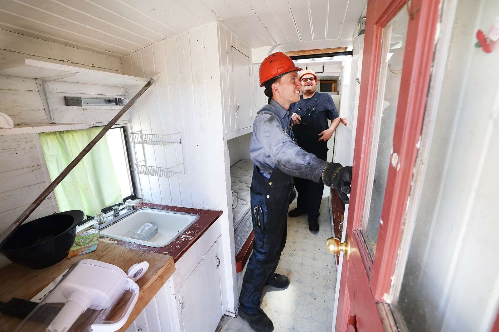 The family installed a desk, hot plate, mini fridge, bathroom, linoleum floors and two bunks for sleeping, transforming the caboose into a cozy place for students to live, cook and study between classes.