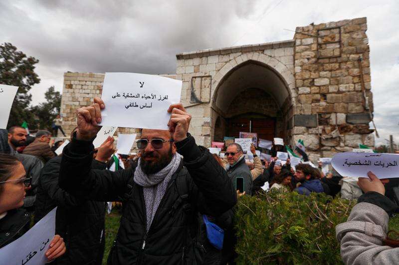 “This is not about whether we want to drink alcohol, this is about personal freedom,” said Isa Qazah, a 45-year-old sculptor from the area who joined the protest along the medieval stone lanes near Damascus' Old City. "We have come here to defend an idea."
