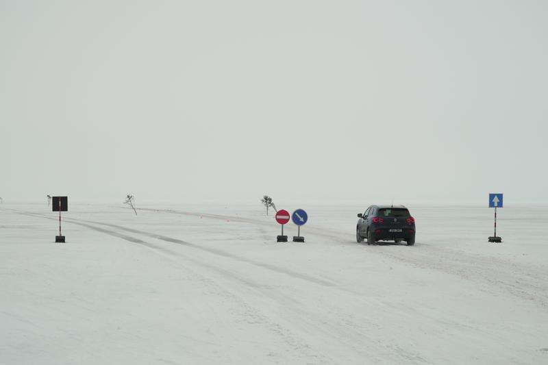 The so-called “ice road” connecting the islands of Saaremaa and Hiiumaa, located in western Estonia between the Baltic Sea and the Gulf of Riga, was officially opened on Sunday with a line of cars waiting to use it that afternoon.
