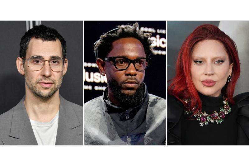 This combination of photos show Jack Antonoff, left, Kendrick Lamar, center, and Lady Gaga. (AP Photo)
