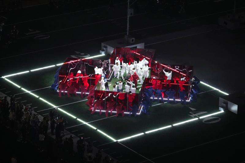 The Grammy-winning rapper — in front of more than 133 million people — chose to perform on a massive, industrialized grid of flashing lights resembling a giant PlayStation controller.
