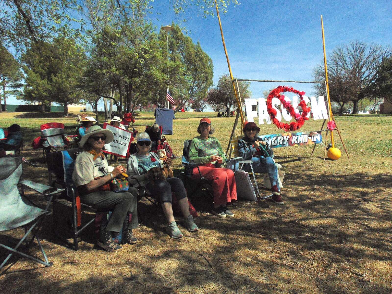 Organizers of Cortez’s Angry Knit-In, a gathering of fiber arts enthusiasts opposing many Trump administration policies, showed up for similar reasons. They sat in lawn chairs and knit red hats, alluding to historic Norwegian headwear protesting the Nazi occupation.