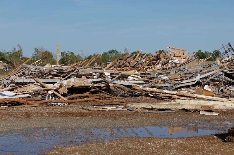 “The tornado just swung right through here and just hit us directly,” Lamerton said, pointing to a giant mess of splintered wood beams, furniture, debris and heavy machinery that was pushed into a massive pile at the edge of the building’s foundation. “We’ve got stuff on the property we can’t even find."