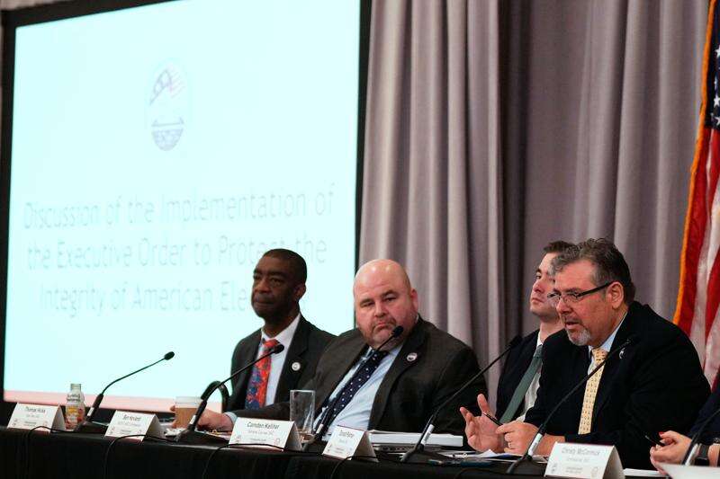 FILE - Commissioner Donald Palmer speaks during a U.S. Election Assistance Commission Standards Board public meeting April 24, 2025, in Charlotte, N.C. (AP Photo/Chris Carlson, File)