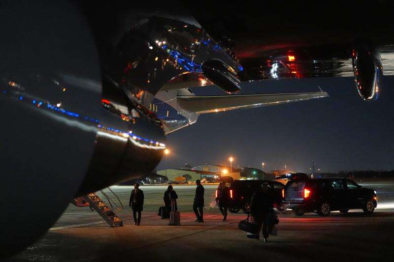 Things are unloaded from Air Force One after the plane, carrying President Donald Trump to the World Economic Form in Davos, experienced a minor electrical issue after departure, Tuesday, Jan. 20, 2026, and returned to Joint Base Andrews, Md. Trump will board a second plane to complete the trip. (AP Photo/Evan Vucci)