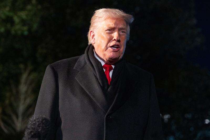 President Donald Trump speaks before departing on Marine One from the South Lawn of the White House, Tuesday, Jan. 20, 2026, in Washington. (AP Photo/Alex Brandon)