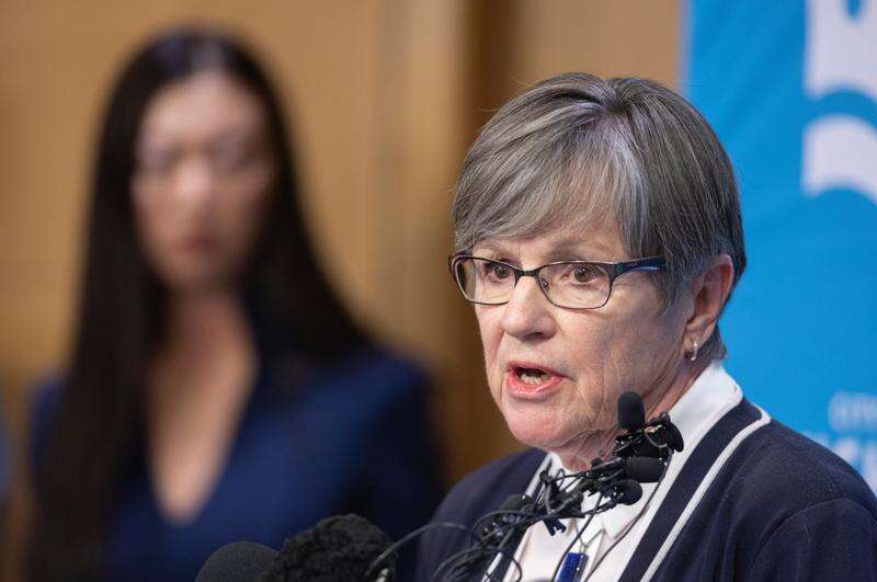 FILE - Kansas Gov. Laura Kelly speaks during a news conference in Wichita, Kan., Jan. 30, 2025. (AP Photo/Travis Heying, File)