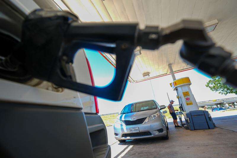 FILE - A person pays for fuel at a Shell gas station, Tuesday, July 29, 2025, in Arlington, Texas. (AP Photo/Julio Cortez, File)