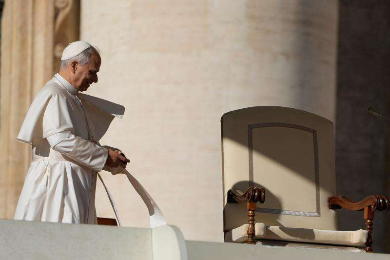 Pope Leo XIV arrives in St. Peter's Square on the occasion of the weekly general audience at the Vatican, Wednesday, Nov. 19, 2025. (AP Photo/Gregorio Borgia)