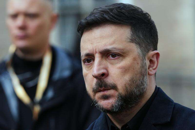 Ukraine's President Volodymyr Zelenskyy arrives for the International Four Freedoms Award ceremony in Middelburg, Netherlands, Thursday, April 16, 2026. (AP Photo/Peter Dejong)