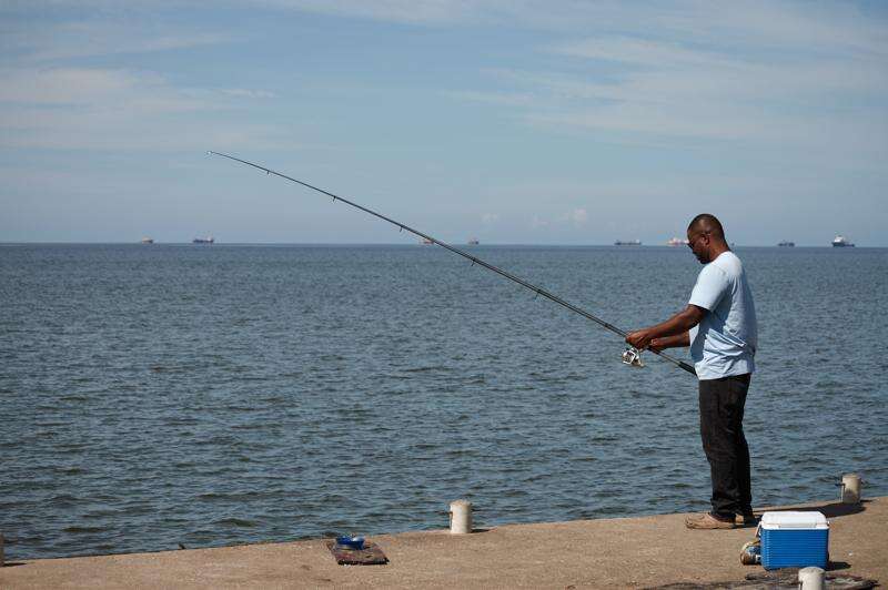 A man fishes in Cocorite, Trinidad and Tobago, Friday, Oct. 3, 2025. (AP Photo/Anselm Gibbs)